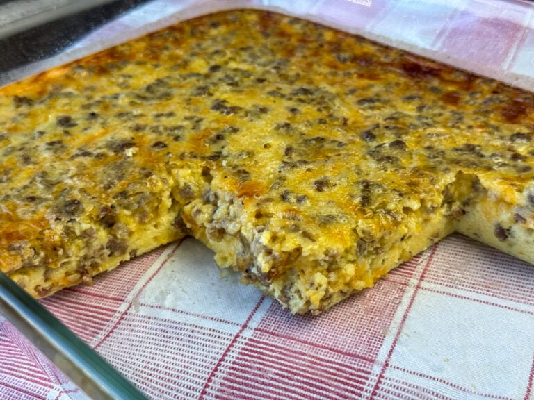 This Sausage Soufflé is similar to our classic Sausage and Egg Casserole, but swaps the bread cubes for Bisquick mix, creating a smoother, more cohesive texture.